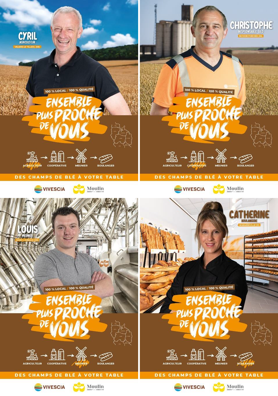 La signature de ce partenariat entre VIVESCIA et le Moulin de Signy-l’Abbaye, en présence de parties-prenantes locales et des acteurs de la filière, marque aussi le lancement d’une campagne de communication omnicanale pour valoriser cette filière locale auprès du grand public. L’affichage dans les boulangeries des portraits d'agriculteurs, de salariés de la Coopérative et du Moulin, ainsi que de boulangers engagés dans cette démarche 100% locale et de qualité en est une des illustrations.