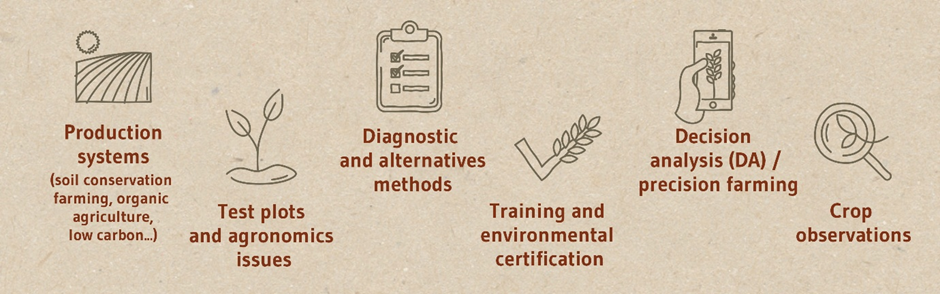 The Cooperative's experts are on the ground every day, supporting and advising cooperative farmers based on their needs and projects for new sustainable, responsible agronomic practices : soil conservation agriculture, low-carbon agriculture, precision agriculture, environmental (HVE) certification, and use of bio-inputs.