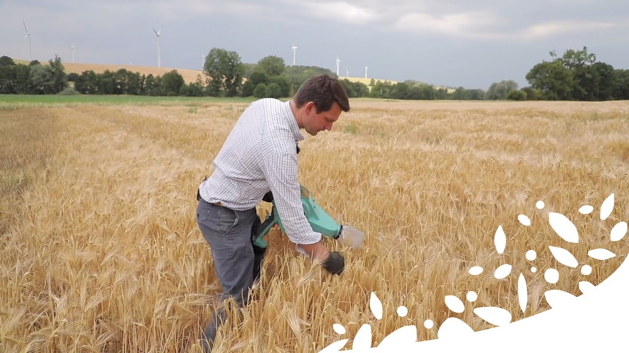 Pour être récolté, le grain doit être à maturité mais aussi répondre à certains critères, comme le taux d'humidité. François-Xavier nous montre comment faire un échantillon. Et il nous explique l'objectif de cette opération. C’est une étape clé avant la moisson.
